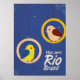 Voar para Rio, Brasil (Fly to Rio,Brazil) vintage travel poster. Retro Tropical birds travel poster to the Nation of Brazil. Brazilian Flight poster. Blue version.