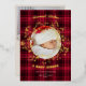 Un modèle de carte de vœux moderne et doux pour annoncer la naissance d'un bébé pour les fêtes de fin d'année, avec un thème hivernal, mettant en vedette un cadre botanique hivernal fantaisiste dessiné à la main avec une véritable feuille d'or, une calligraphie moderne et une typographie pour le titre : "Vœux chaleureux et baisers de bébé" avec une véritable feuille d'or également, sur un fond douillet à carreaux rouges de Noël. Modèles pour deux photos.