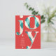 Cette carte de Noël audacieuse et moderne rayonne d'énergie festive avec un arrière - plan rouge frappant et le mot "JOY" dans une grande typographie à motifs. Le texte qui l'accompagne exprime des voeux chaleureux pour les fêtes, ce qui en fait un choix parfait pour partager l'esprit de Noël. Avec un mélange d'éléments contemporains et classiques, cette carte transmet un message de joie, de paix et de joie pour la saison.