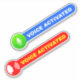 These "Voice Activated" stickers clearly indicate that the dispenser machines are controlled by voice commands, promoting a touch-free and hygienic user experience. The stickers' simple design and clear message make it easy for users to identify and interact with the dispensers.