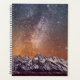 Cette photo montre la Voie Lactée sur Grand Teton. La lumière de la ville derrière les montagnes de Teton projette une lueur orange.