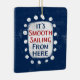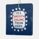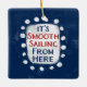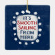 Le texte gras "Smooth Sailing From Here" est centré sur un arrière - plan bleu marine. Le texte rouge et bleu est posé sur un rectangle blanc avec de grands points blancs texturés autour, offrant un contraste ludique sur le fond de couleur solide.