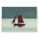 Un yacht vintage à voile rouge traverse Cardiff Bay.