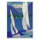 Peinture stylisée dans les bleus et le blanc de deux voiliers avec le plein vent dans des leurs voiles.