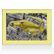 Vieux photo de voiture jaune avec champ noir et blanc. Mots clés : jaune, voiture, automobile, automobile, "noir et blanc", couleur, photo, photo, antique, vintage, noir, blanc, "cadeaux pour lui", champ, vieux, artistique,