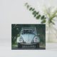 Voiture de bug bleu sur la carte postale de plage