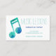 Cartes de visite de rappel de voix de piano de carte de rendez-vous de leçon de musique. Note musicale bleue de jolie aquarelle sur l'avant et le postérieur. Ajoutez votre information de titre, de nom et de contact pour vos services de leçon de musique. Customisez pour changer des styles de police ou des couleurs. Le postérieur a la pièce d'écrire en prochaine session pour des rappels. Tout le texte est editable. www.PrettyBusinessCards.com