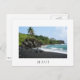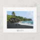 Postcard with a volcanic black sand beach in Waianapanapa State Park along the famous Road to Hana on the tropical island of Maui, Hawaii, USA with a white border and the text: 'Maui'.