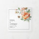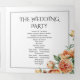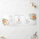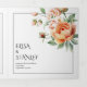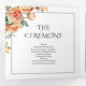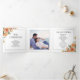Ce programme triplé magnifiquement conçu pour une cérémonie et une célébration mariages présente de magnifiques fleurs de tourbe de pêche, complétées par de délicats feuilles verts sauge aux coins. La pièce centrale intérieure met en valeur une photo chère du couple, créant une touche personnelle. Les noms du couple sont élégamment exposés dans la typographie décorative, tandis que chaque panneau est élégamment bordé de fines lignes noires, ajoutant une finition raffinée à la présentation générale.