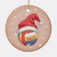 Volleyball Ball with Red Santa Hat Name Christmas Ceramic Ornament