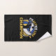 It was advertised as NAVY blue and the color sent was greenish blue. I am disappointed in this product. Quality and printing are great as are all my other orders. As you can see in picture the tea towel on right is perfect, hand towel not so much! Print was awesome and just as ordered