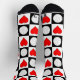 Fun high performance athletic crew socks for volleyball players, coaches and fans, with a seamless black and white chequered pattern featuring volleyballs on the black squares and bright red hearts on the white squares. These are perfect for volleyball players to wear to volleyball practices and team events, or any time during volleyball season. Great for volleyball coaches and fans as well!