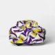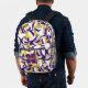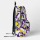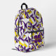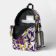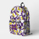 This volleyballs pattern backpack features a random, varied size purple, gold & white volleyballs turned every which way on a customizable white background - personalize with the athlete's name & jersey number - by katz_d_zynes