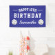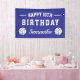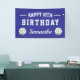 Volleyball theme Happy Birthday party custom Banner . Sporty ball design with fun typography and custom blue background colour.