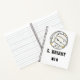 Volleyball filled with gold and black hearts adorns the top of the notebook.