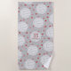This cute personalized volleyball themed beach towel features a simple pattern of white volleyballs surrounded by tiny pink and red hearts on a light grey background - player name and jersey number are customizable - by katz_d_zynes