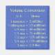 This magent is pretty and useful. It features a background that looks like blue denim. There is a volume conversion chart featuring U.S. volumes into Metric and back again. Perfect for someone with a cook book from another country or someone who has moved to another country!
