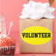 Volunteer stickers. Customize text, style, and colours to match your event.