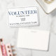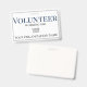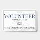 This custom identification badge features the title "Volunteer" printed in a large, bold blue font near the top of the badge. The following text contains the volunteer or employee information and name of the company or organization. The volunteer identification badge is bordered with a simple grey coloured frame. A sample company or business logo is placed in the centre which you can replace with your own logo or other image.