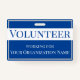 This identification badge for a volunteer features a solid blue background. The title "Volunteer" is printed over a white banner in blue text so that the title is easily visible. You can personalize the ID badge to include your own business or organization name or other custom text.