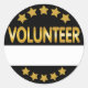 Event volunteer name tag with elegant gold and black design with stars and a space to write name on, for fundraising or nonprofit gala or other event.