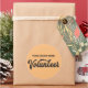 Volunteer stickers with your custom group or organization name. The word volunteer is in a fun retro script font. Change the background colour to any colour you like.