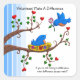 "If you're not making a difference, what difference do you make?" ~Daniel J. Radcliffe. A warm and colourful sticker design with a pair of bright blue birds, colourful tree branches and leaves, a lovely flowered nest, and inspiring words. Customize by changing the text field if you'd like to express your own thoughts, or leave as shown. Would make a great "thank-you" gift for a special volunteer.