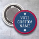 Create your own vote button magnet for your political campaign or school. Easily personalize our high quality button magnet with your candidate name or other custom text. The print is protected with scratch resistant and UV resistant mylar. It has a 2.25 inch diameter. This design features the American flag colours red, white, and old glory blue with white stars. Made in USA. No minimum order quantity and no setup fee.