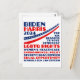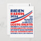 Vote for Joe Biden and Kamala Harris for president and VP in the 2024 presidential election to support the democratic party platform. This political postcard shows a list of six reasons: LGBTQ rights, women's healthcare, environmental policy, student loan reform, equal opportunity for minorities and women, sensible gun laws, and other democrat values. Show people your political beliefs in blue and red text.