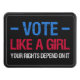 'Vote Like a Girl Your Rights Depend On It' quote for any democrat woman to wear on election day or at a rally.