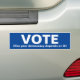 A bumper sticker that says Vote ( like your democracy depends on it) with a blue background and the words in white.