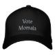 Fits well due to elastic edging, not adjustable. Good qualty material. Good quality embroidering. Subtle lettering (white on beige) just as my wife likes.