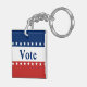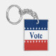 This red, white, and blue keychain has the word 'Vote' in the centre. The text is dark blue. The top stripe is blue and has white stars. The centre stripe is white. The bottom stripe is red with white stars.