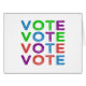 En bleu démocrate, vert, violet et rouge, le mot VOTE en gros caractères déformés. Partagez vos sentiments sur les élections. Le bleu représente les démocrates, vert l'environnement, violet pour les indépendants et rouge pour le parti républicain.