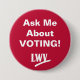 "Ask Me About VOTING!" Pin. 3" round with LWV logo.