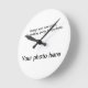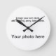Horloges, choix de tailles, de styles, choisissez un design ou fabriquez facilement votre propre produit sans frais supplémentaires. Ajoutez des photos spéciales ou votre oeuvre, et/ou du texte. Choisissez une couleur arrière - plan, ou remplissez la face de l'horloge entière avec votre photo.