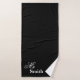 La couleur de la serviette (montrée dans le noir) et du texte (montré dans le blanc) peut être modifiée avec les outils fournis dans le menu de la personnalisation de Zazzle. Ajoutez votre propre nom au lieu du texte "M. Smith". Veuillez nous contacter si vous avez besoin de n'importe quelle aide.