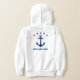 Garçons sweat - shirt à capuche avec une ancre de navire classique personnalisée, 5 étoiles et votre nom personnalisé, nom de bateau ou autre texte souhaité en bleu marine sur blanc. Choisissez parmi plusieurs couleurs et faites des ajustements pour correspondre à votre équipement de bateau. Fait un grand cadeau pour toute occasion.