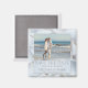 Un élégant aimant Save the Date avec votre propre photo encadré par un design moderne avec des coquillages blancs.