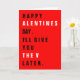 Recto : Joyeuse Saint-Valentin. Je vous donnerai le V plus tard. Intérieur : Vierge