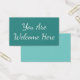 Parfois, votre forme d'"activisme" prend un autre visage. Ces petites notes, en utilisant la "technologie carte de visite", vous permettent d'écrire un petit message personnel sur le dos vierge si vous le souhaitez. Sinon, il suffit de déposer la note imprimée dans la poche de quelqu'un, sur son bureau, ou de la leur remettre ! Utilisez-les pour accueillir quelqu'un à votre réunion de programme en 12 étapes, à votre club de lecture, votre organisation bénévole, votre église, mosquée, temple ou autre maison de réunion religieuse. Utilisez-les pour accueillir la nouvelle famille de réfugiés dans votre quartier - ou toute nouvelle famille dans votre quartier - lorsque vous déposez une miche de pain ou une assiette de biscuits. Vous pouvez vraiment les utiliser pour accueillir toute personne à qui vous choisissez de tendre la main. Bienvenue à quelqu'un. Ces cartes sont destinées à aider ! / Turquoise avec du blanc sur l'avant et une teinte plus légère et complémentaire sur le dos, pour aider votre note manuscrite (si vous choisissez d'en écrire une!) se montrer mieux. // J'ai utilisé une police de script décontractée et amicale. Vous pouvez cliquer sur "customiser" et modifier la police - ou les couleurs ! - comme vous le souhaitez.