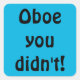 Y êtes-vous vraiment allé ? Vous ne l'avez pas fait ! Ces autocollants Oboe You Didn sont le cadeau parfait pour tout joueur de hautbois rond. Le design présente un arrière - plan bleu vif et dit, "Oboe you not !" dans une police Hobo parce que hautbois et hobo rime. Oui, c'est le genre de génie créatif avec lequel vous faites face !