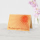 Des rayons orange vif provenant d'un design fractal de soleil abstrait servent de fond à ce concept de couverture de carte représentant un lever de soleil tandis que le design est retourné et tourné pour signifier conceptuellement le coucher du soleil à l'intérieur. Le sentiment de la couverture se poursuit à l'intérieur au même niveau, ce qui laisse de la place en haut à l'intérieur pour une note manuscrite spéciale. Remplissez les blocs de modèle avec vos propres mots, supprimez tout le texte pour une note manuscrite spéciale à l'intérieur ou cliquez sur "Personnalisez-le !" pour sélectionner un style, une taille et une couleur de police que vous préférez.