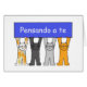 Quatre chats de dessins animés brandissant une bannière bleue profonde qui dit "Pensando a te" en blanc, ce qui signifie "Pensez à vous" en italien.