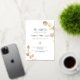 A white background decorated with golden eucalyptus, sprigs. Personalize and your name and ceremony details. The text is writen with real gold foil.