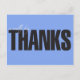 Envoyez le plus grand merci noir et bleu que vous pouvez. Le dos de la carte postale est laissé vide pour votre propre message personnalisé. Disponible en couleurs alternatives avec des produits correspondants.