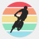 Une silhouette de VTT contre des rayures arc-en-ciel rétro!