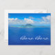 Carte postale d'une vue aérienne sur l'île tropicale Bora Bora avec lagon turquoise dans l'océan Pacifique près de Tahiti en Polynésie française avec le texte : 'Bora Bora'.