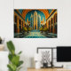 Vue Cityscape Couleurs Mutées Style Art Déco. Les couleurs sont orange, bleu, rouille et bronze. Le ratio d'aspect est de 3:2. Il a été conçu pour être imprimé en 36"×24", 30"x 20", ou 24"×16"