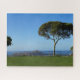 Puzzle. Une paire d'arbres se dresse bien contre un ciel dégagé avec une vue sur le cratère lointain de Diamond Head et une mer calme au-delà. Au premier plan, l'herbe verte et luxuriante est soignée et offre un cadre serein aux allures de parc.